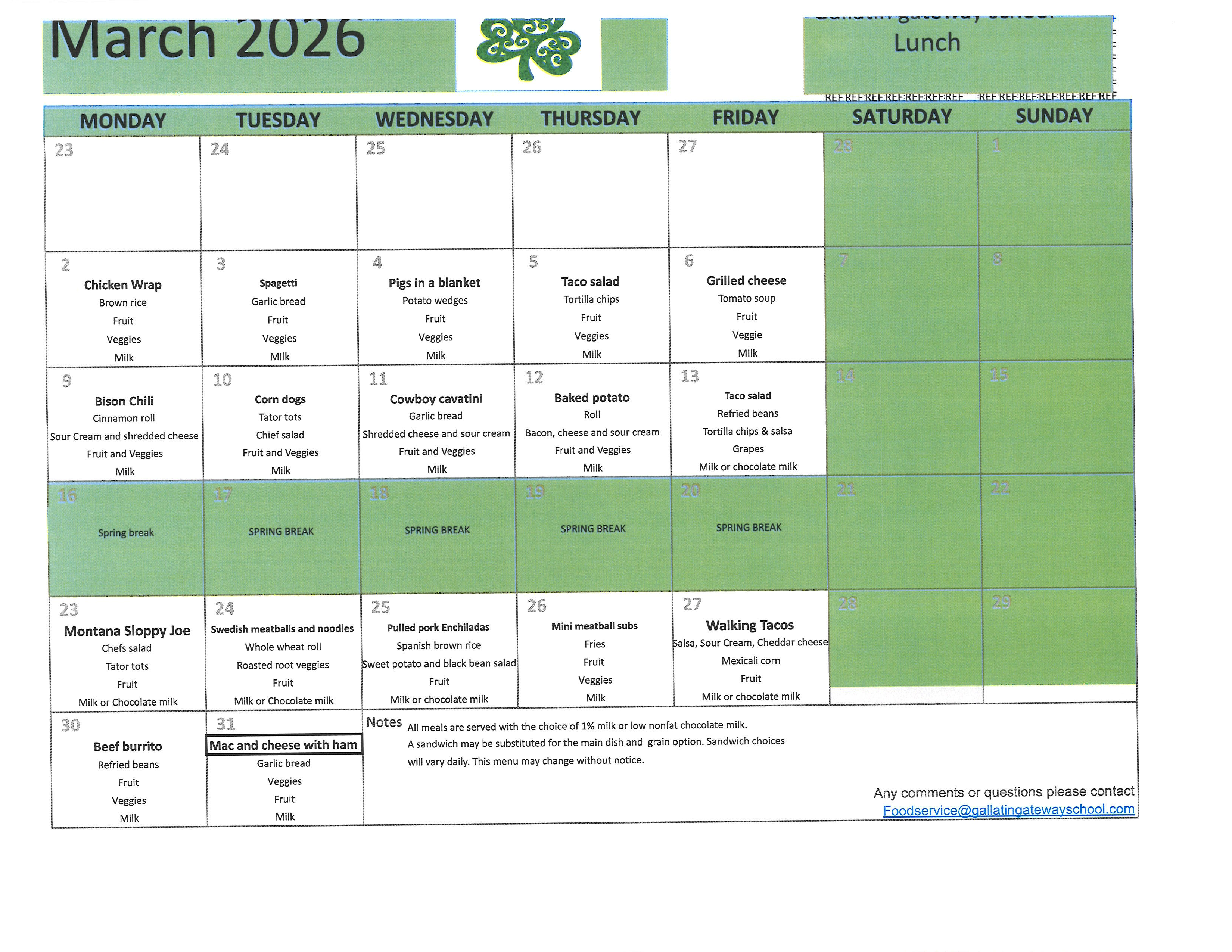 25/26 meal menus